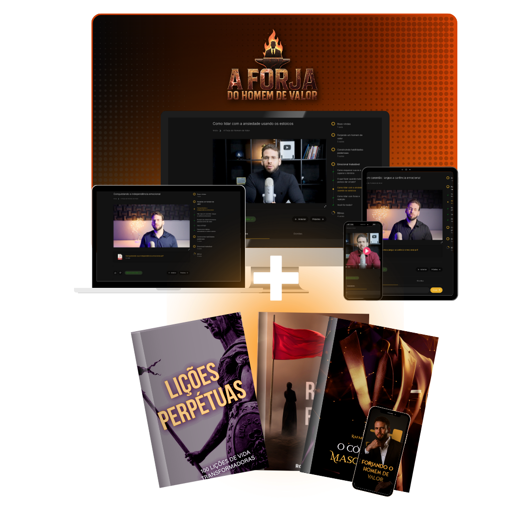 É um método sem enrolação que muda sua mentalidade, destrói padrões de fraqueza e te transforma num homem blindado, respeitado e inabalável.